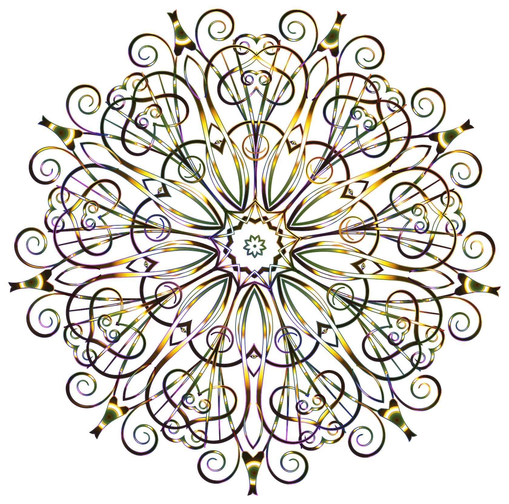 Tags: abstract, art, chromatic, colorful, decorative, floral, flourish, flower, geometric, gold, metallic, ornamental, prismatic, rainbow, shiny, vine