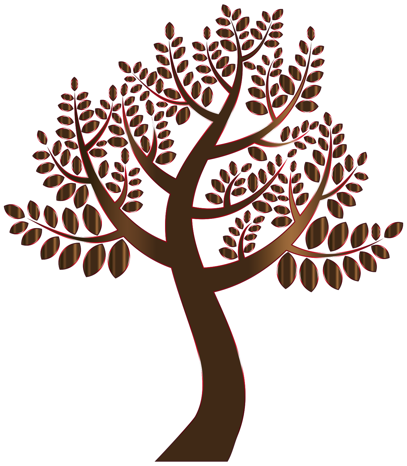 This features a tree with brown branches and red leaves. It has a curved stem, giving it an artistic appearance. The tree is surrounded by many other trees in the background, creating a sense of depth and dimension to the scene. The combination of the brown branches and red leaves creates a striking contrast against the white background, making this image visually appealing.