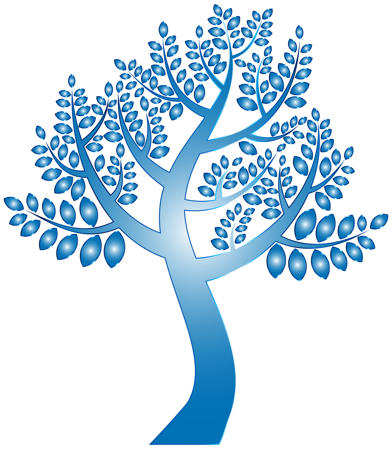 This features a blue tree with no leaves, giving it an empty and barren appearance. It is a simple, prismatic tree design that stands out against the white background of the image. The tree's branches are visible in various directions, creating a sense of depth and dimension to the overall composition. This minimalist representation of a tree showcases its structure and form without any distractions from leaves or other elements.