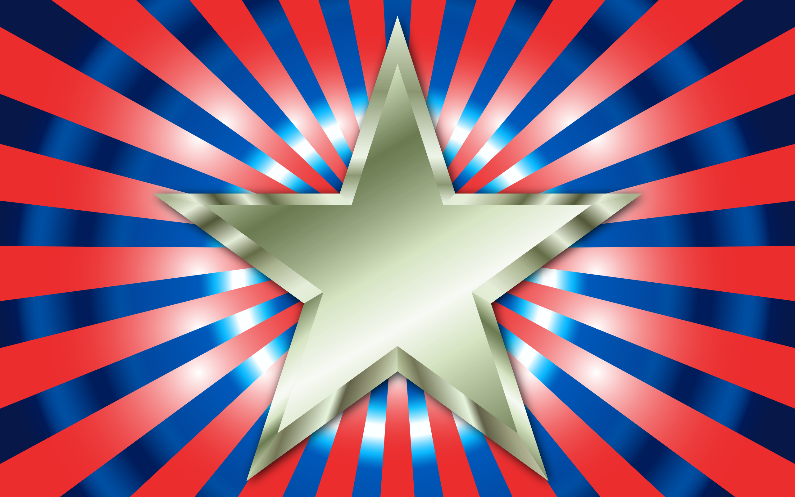 This features a large, shiny star with a blue and red stripe background. The star is silver in color and appears to be the main focus of the image. It seems to be placed against a backdrop that adds depth and interest to the overall composition. The combination of the star's brightness and the contrasting colors of the stripes create an eye-catching visual effect, making it an appealing design element for various applications.