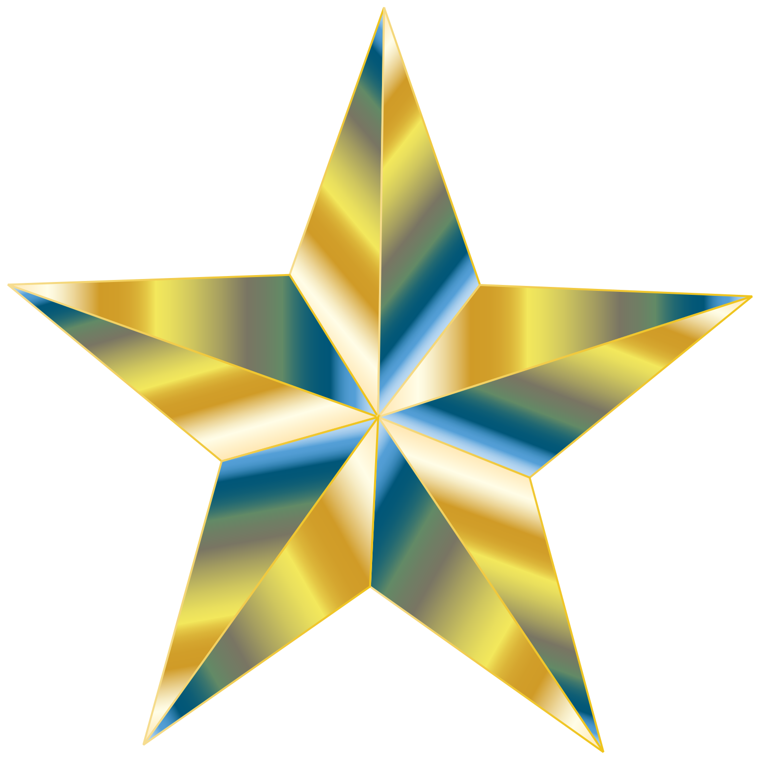 This features a large, colorful star with a yellow center and blue and gold accents. It is a three-dimensional representation of the star, giving it an interesting visual effect. The star has a shiny appearance, making it stand out against its background. This unique design could be used for various purposes such as decoration or even as a symbol in a logo.