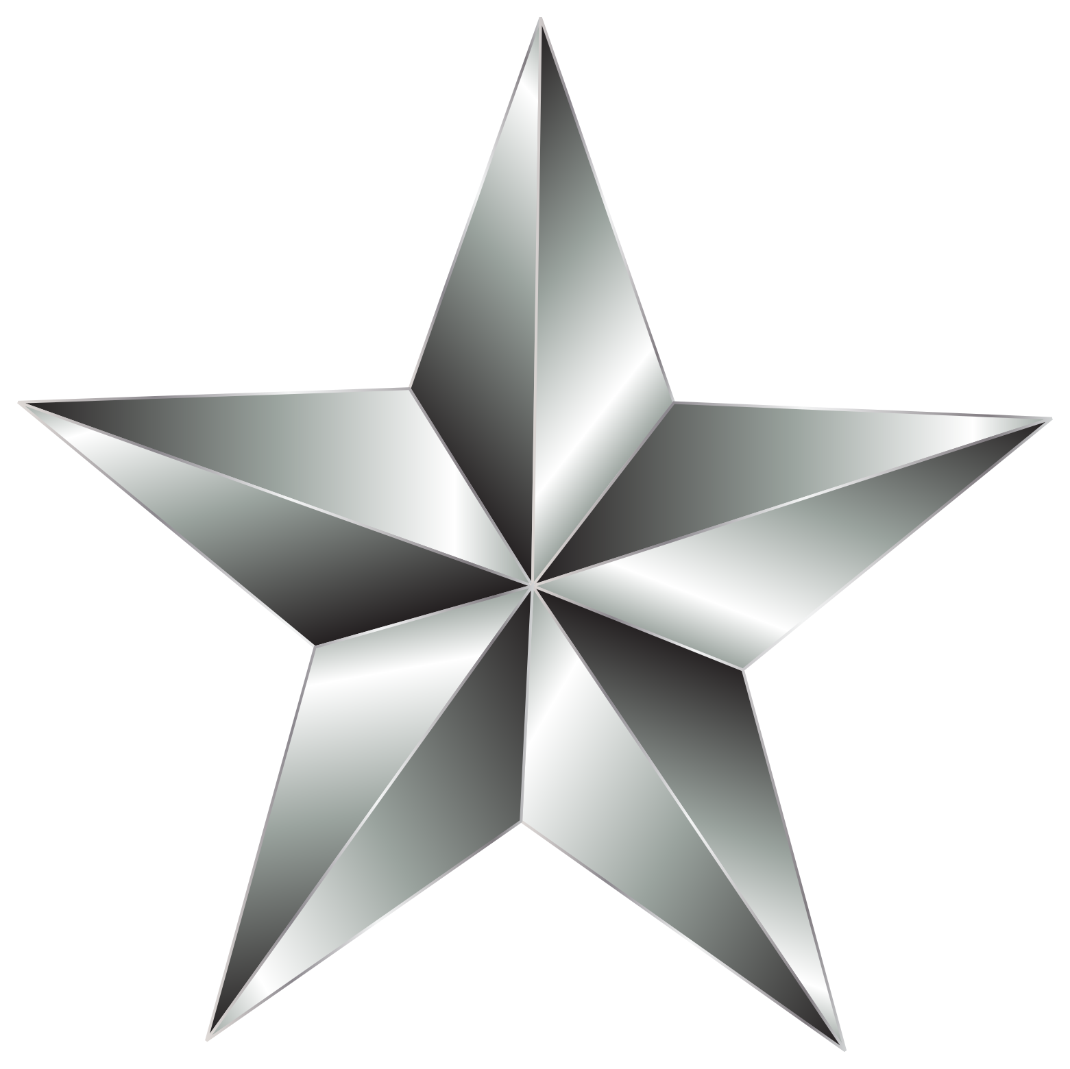 This features a silver star with five points, giving it a glossy appearance. It is a close-up of the star, showcasing its intricate details and design. The star's shape and color make it an eye-catching symbol that can be used in various contexts such as decorations or logos.