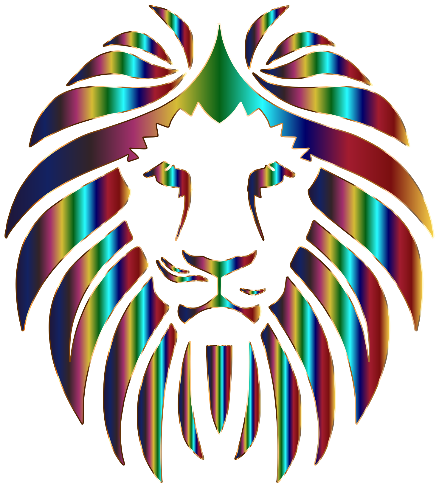 This features a colorful lion logo with a rainbow-colored mane. The lion's head is prominently displayed, and its eyes are open, giving it an alert appearance. The vibrant colors of the lion's mane create a striking contrast against the rest of the design, making it stand out even more. This eye-catching logo could be used for various purposes such as branding or decoration, showcasing its unique and visually appealing nature.