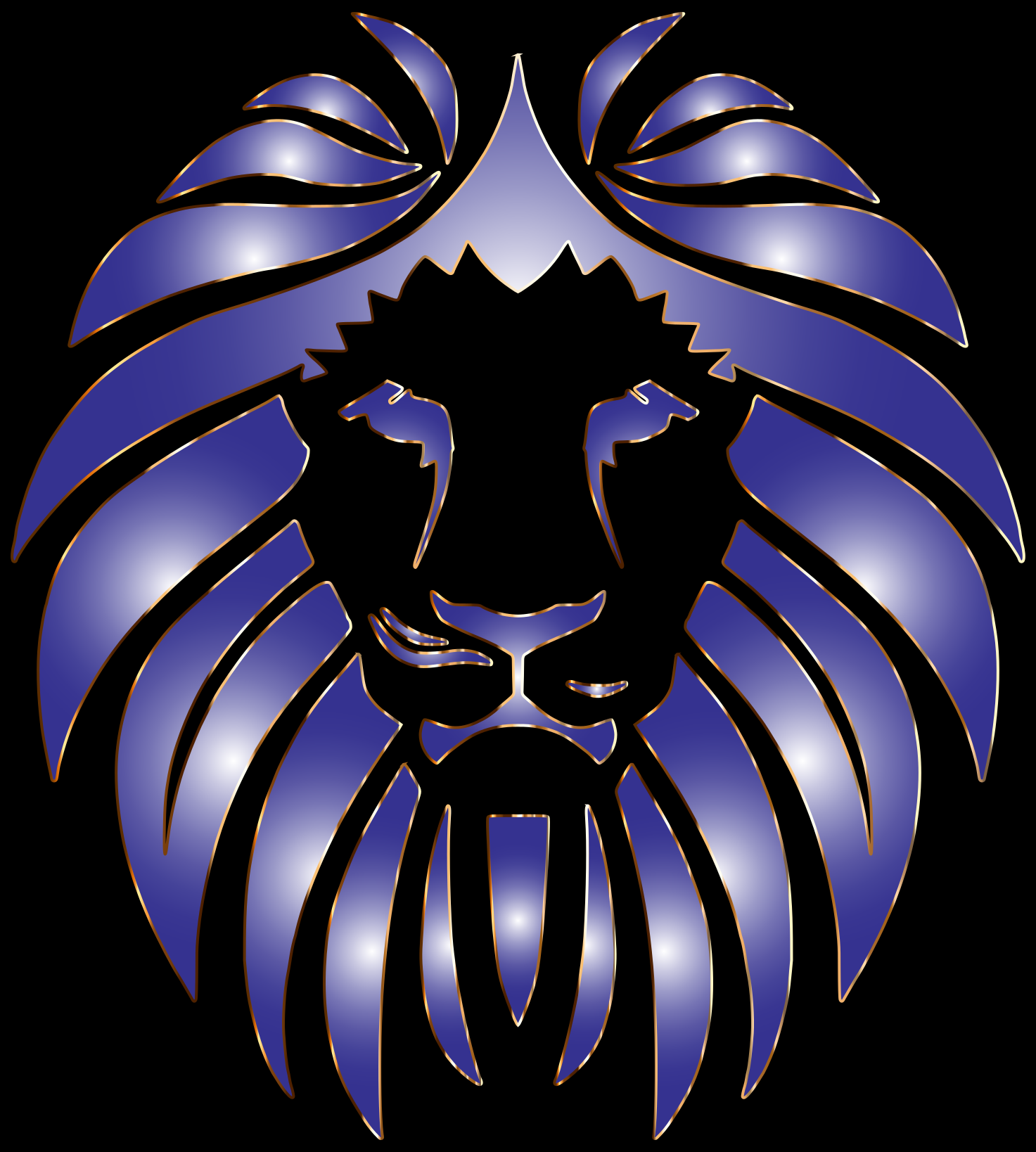 This features a blue and purple lion's head, which is the central focus of the picture. The lion has its mouth open, giving it an imposing appearance. The colors used in this design are predominantly blue and purple, creating a striking contrast against the black background. This unique symbol could be associated with various meanings or concepts, such as strength, courage, or leadership. Overall, the image captures the essence of a powerful lion's head, making it an eye-catching and memorable visual representation.