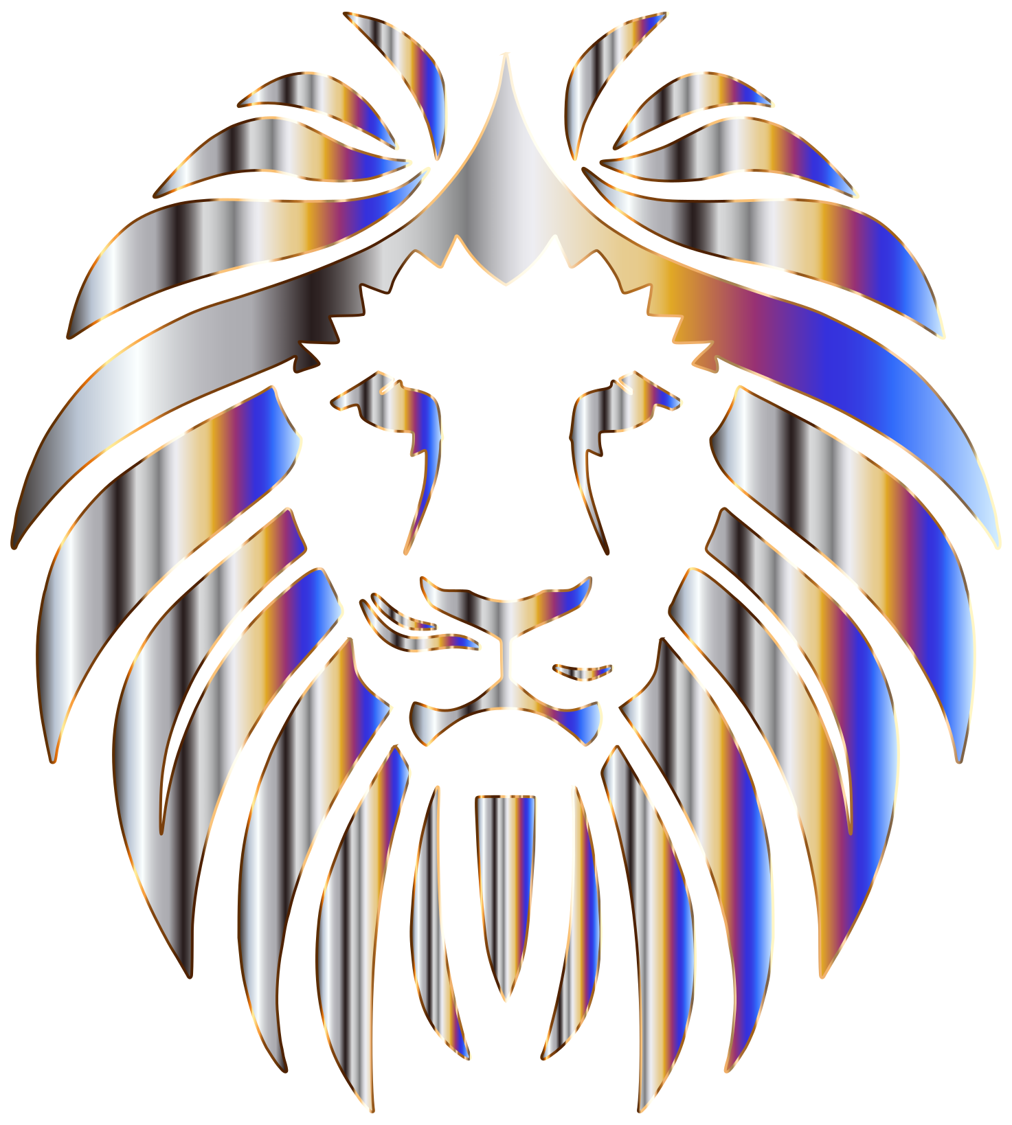 This features a colorful, abstract lion head with a rainbow-colored mane. The lion's face is prominently displayed in the center of the design, surrounded by a vibrant and eye-catching background. The colors used in this artwork create an interesting visual effect that captures the viewer's attention. This unique piece of art could be used as a decorative element or even as a symbol for strength and courage.