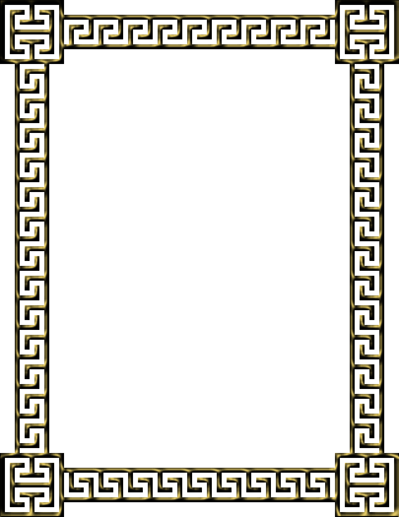This features a beautifully designed golden frame with intricate patterns of swirls and interlocking circles. This ornate design is reminiscent of ancient Greek artwork, giving the impression that it could be an antique or a piece of art inspired by such styles. The frame itself has a rectangular shape, with square shapes on each corner, adding to its elegance and sophistication.