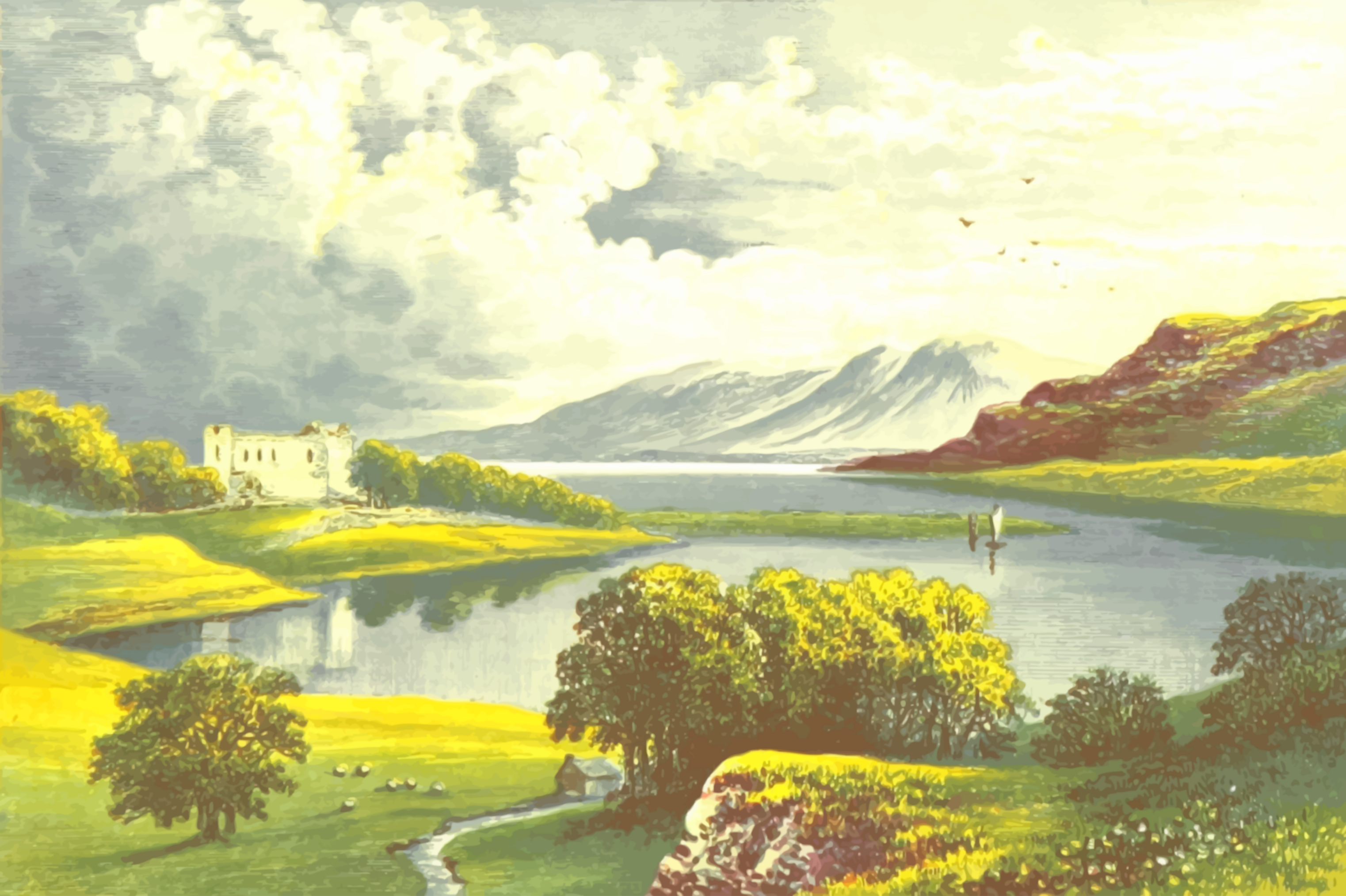 Tags: landscape, mountain, lake, sheep, cloud, etive loch