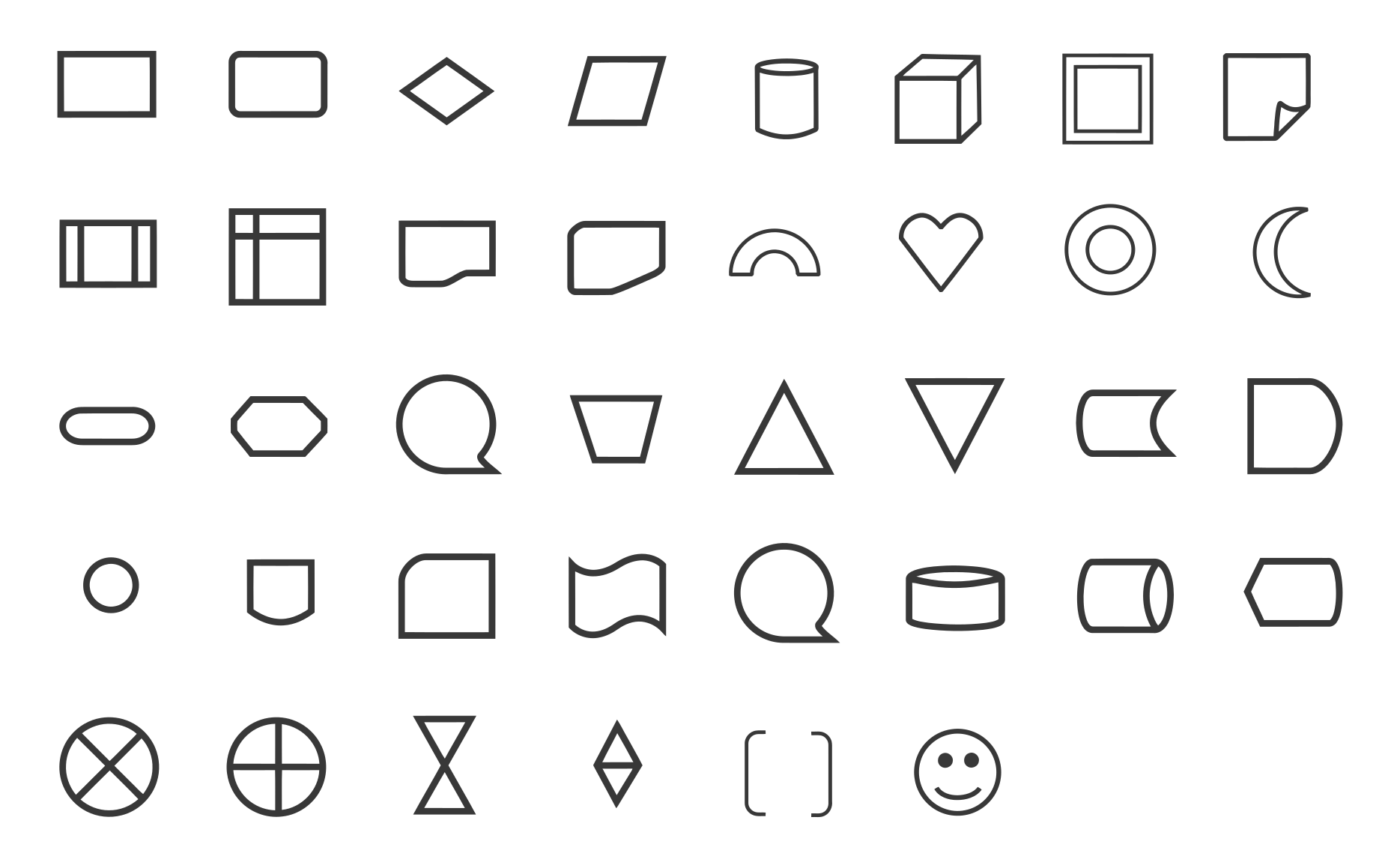 Tags: basic, circle, cube, cylinder, heart, icon, set, shape, smiley face, square, triangle, shapes basic