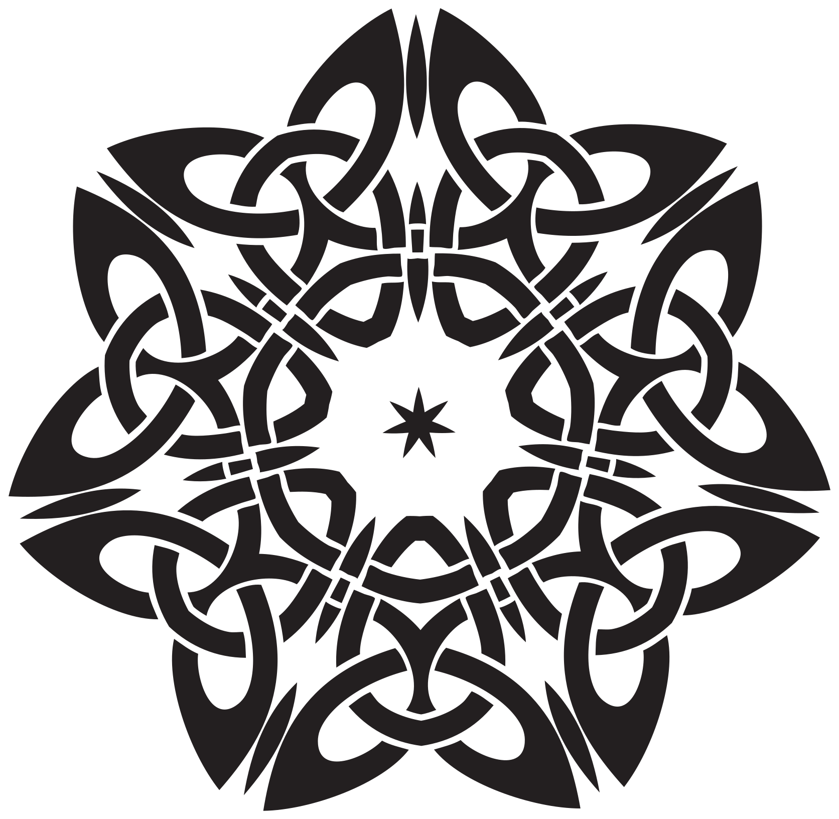 This features a beautifully designed Celtic knot star, which is an intricate and detailed pattern that resembles a flower. This particular design has many points and sharp edges, giving it a striking appearance. The star is black and white in color, adding to its visual appeal. The overall composition of the image showcases the intricate details of this Celtic knot star, making it an interesting and captivating piece of artwork.