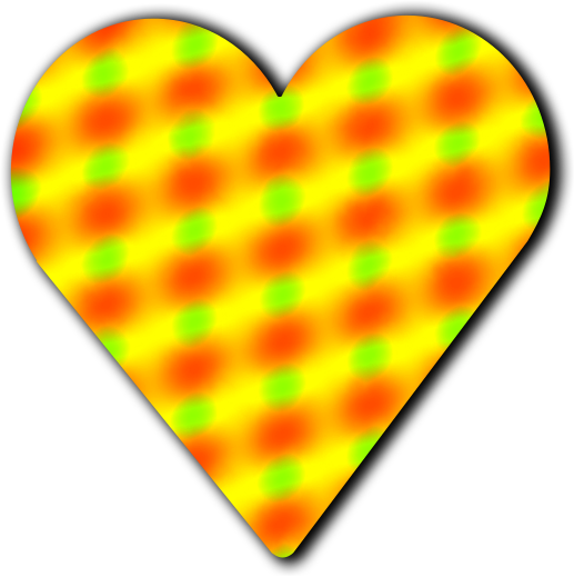 This features a brightly colored heart with a yellow background and green polka dots. The heart is filled with many small circles, creating an interesting pattern that stands out against the background. This unique design gives the heart a playful and lively appearance, making it an eye-catching decoration or embellishment for various occasions.