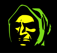 This features a close-up of a man's face, with the man wearing a green hood over his head. His facial expression appears to be angry or displeased. The background is black, which draws attention to the man's face and the colorful hood he is wearing. This image could represent an artistic representation of a person or symbolize a particular emotion or message.