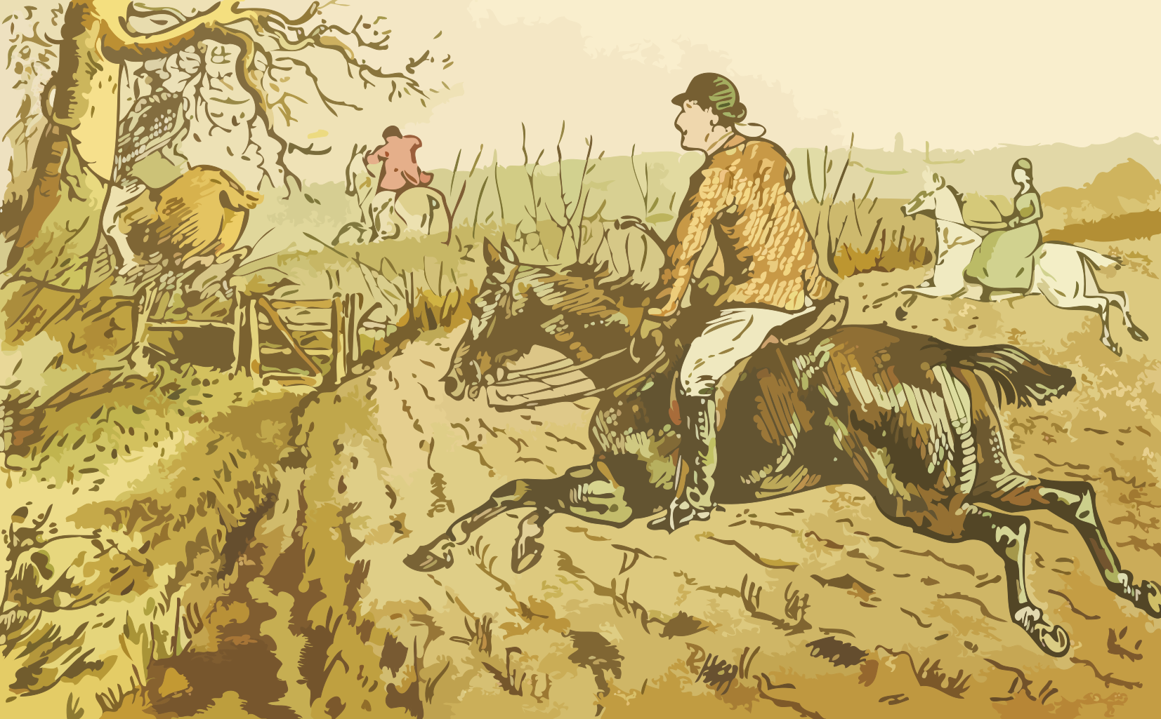 Tags: horse, rider, field, fence, season hunting