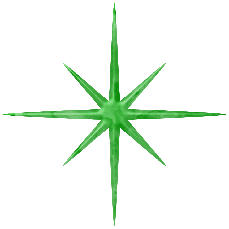 This features a large, bright green star with eight points. Each point of the star is distinct and clearly visible, creating an eye-catching pattern against the white background. The vibrant color of the star makes it stand out prominently in the scene, drawing attention to its unique shape and design.
