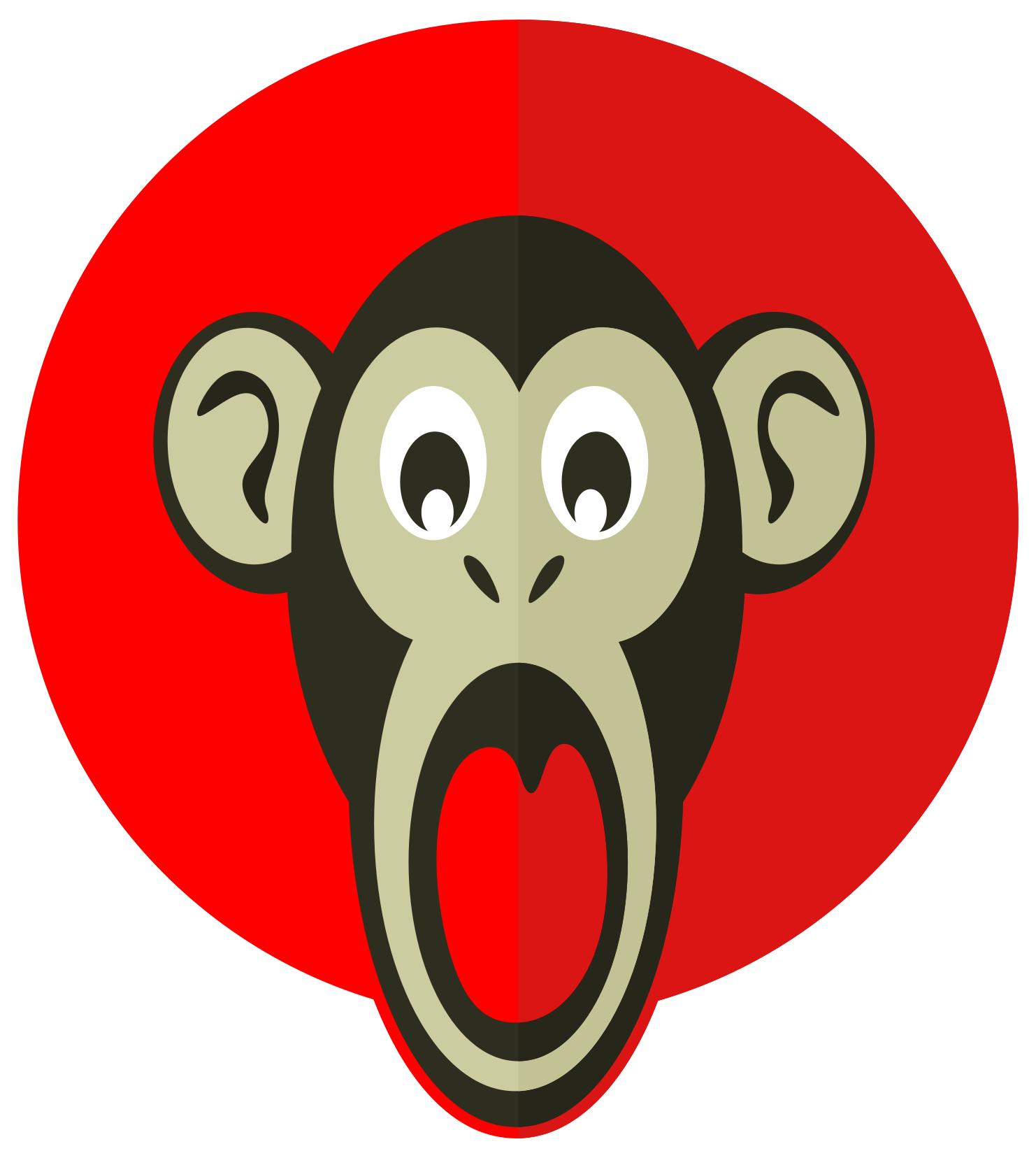 This features a red and white circle with an open mouth of a monkey. The monkey's mouth is wide open, giving the impression that it is yawning or making a funny face. The monkey's eyes are also drawn on, adding to its playful appearance. The overall design gives off a lighthearted and amusing vibe.
