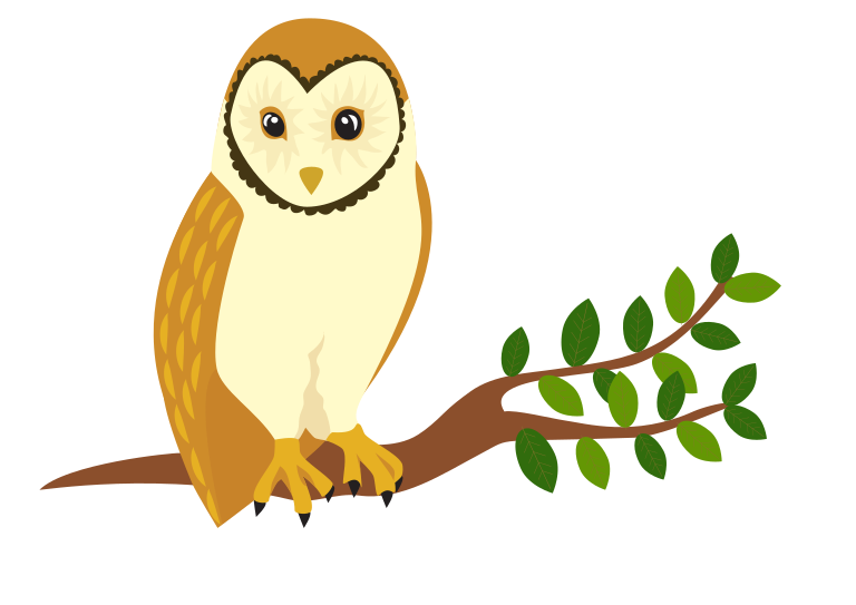 This features a cute cartoon owl perched on the branch of a tree. The owl is sitting in an upright position, with its wings spread out to the sides. It has a brown and yellow color scheme, giving it a warm and inviting appearance. The tree branch beneath the owl appears to be made of wood, providing a natural backdrop for this charming scene.
