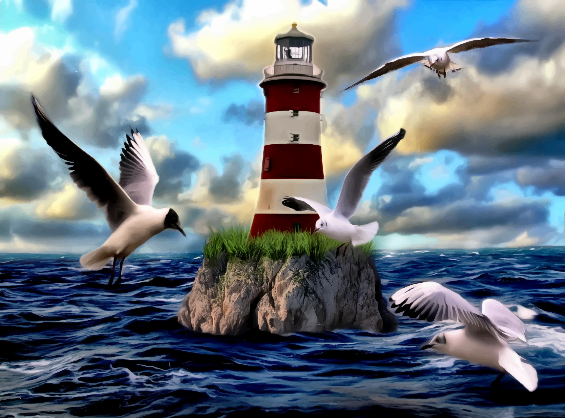 Tags: seagull, lighthouse, ocean, light guiding