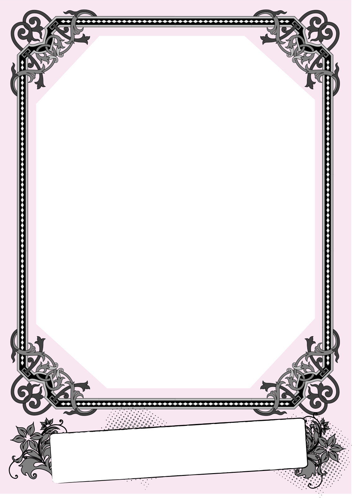 This features a pink and black frame with an empty space in the center. This empty space is meant to be filled by writing or drawing, creating a personalized message or artwork. The frame itself has intricate designs on it, adding a decorative touch to the overall appearance of the piece. The combination of pink and black colors gives the image a warm and elegant feel, making it suitable for various occasions such as greeting cards or personal notes.