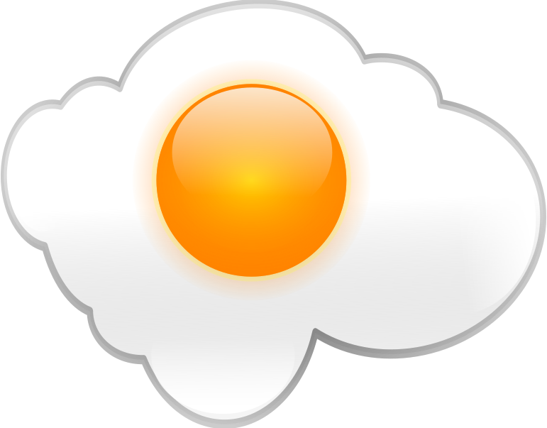 This features a cartoon-like illustration of an egg, with the yolk in the center and the white part surrounding it. The yolk is bright orange, giving the impression that the egg has been cooked sunny side up. The overall design of the egg appears to be a cloud, adding a whimsical touch to the image. This creative representation of an egg can evoke feelings of warmth and comfort, as well as remind viewers of the delicious taste of a perfectly cooked fried egg.