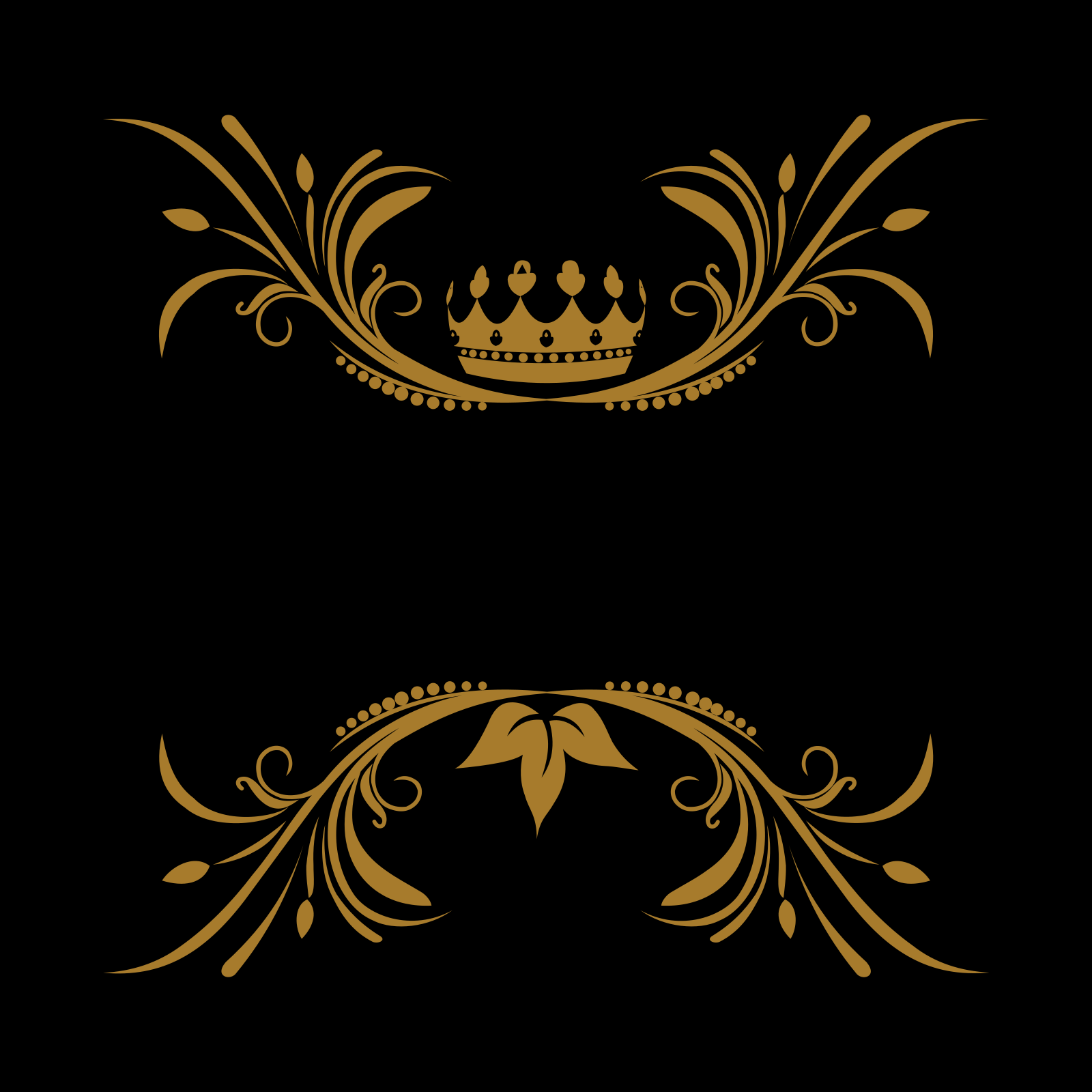 This features a black background with two gold designs. Each design is adorned with a crown, and the overall appearance gives off an elegant and sophisticated vibe. The intricate details of the crown are visible on both designs, making them stand out against the dark backdrop. This artwork could be used for various purposes such as decoration or even as a part of a larger project that requires a touch of luxury and refinement.