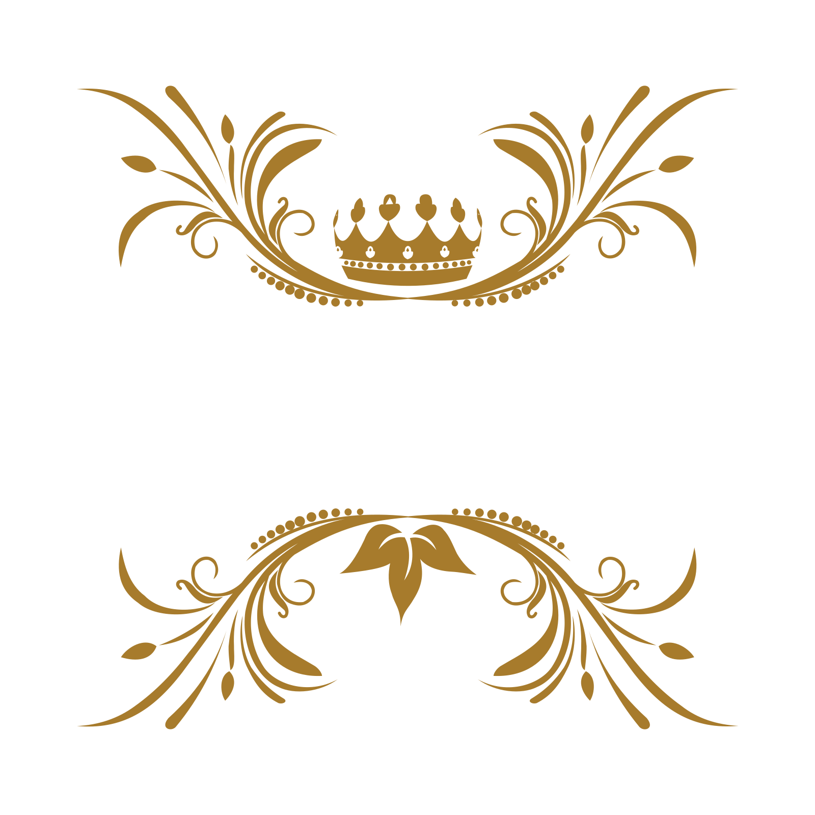 This features two decorative pieces with intricate designs. The top piece is adorned with a crown in the center, while the bottom piece has a leaf as its central element. These ornate patterns are likely used for embellishing various items or spaces, such as clothing, accessories, or interior design elements. The gold color of these decorative pieces adds an elegant touch to their appearance, making them suitable for use in upscale settings or special occasions.