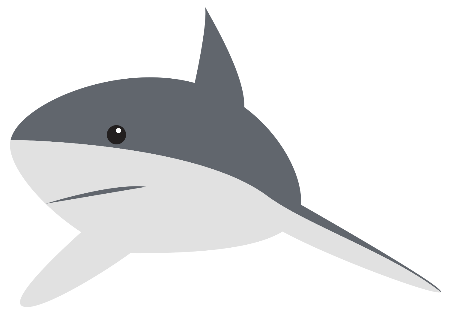This features a cartoon shark with a light gray underbelly and dark gray top. It is depicted in a two-toned color scheme, giving it an interesting appearance. The shark's mouth is open, possibly indicating that it is swimming or preparing to attack its prey. Its fins are also visible, adding more detail to the illustration. Overall, this image captures the essence of a shark in a creative and visually appealing manner.
