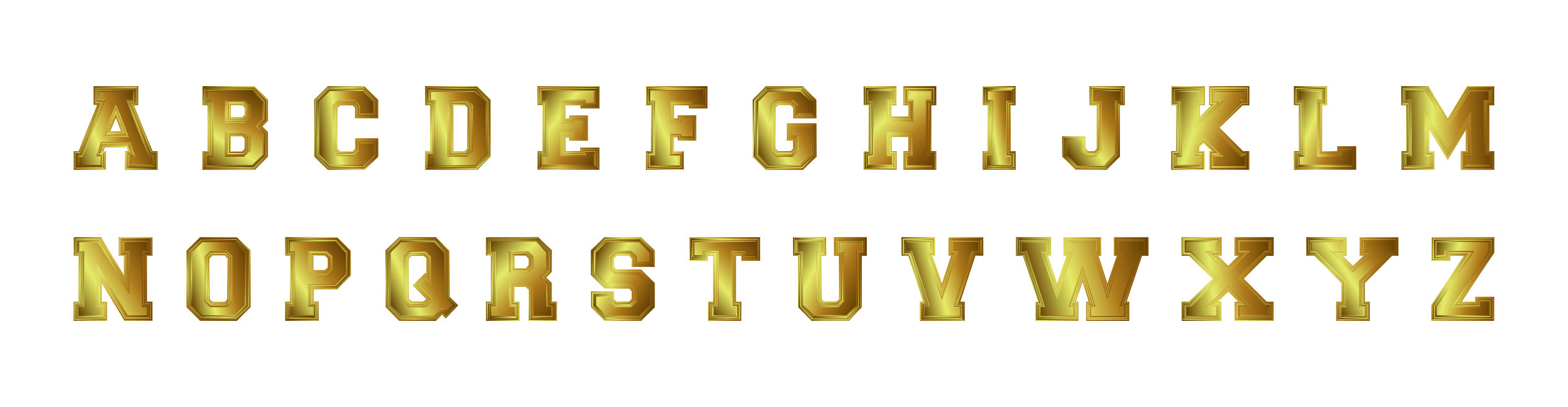 This is a close-up of an alphabet, featuring golden colored letters. These letters are arranged in a row and appear to be shiny, giving the impression that they are made of metal or have a reflective surface. The arrangement of the letters creates a visually appealing display, making it an interesting focal point for viewers.
