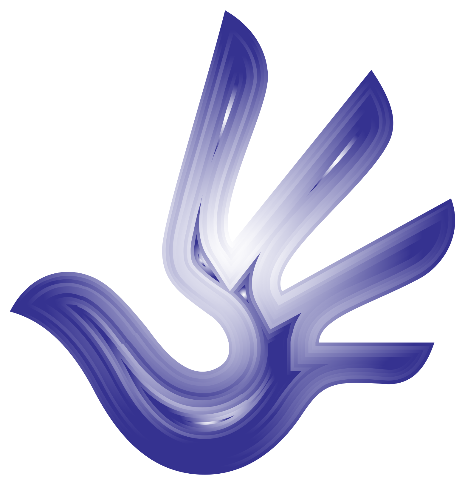 This features a blue bird with its wings spread out. The bird's wings are composed of four distinct feathers, each one slightly overlapping the other. The overall color of the bird is predominantly blue, giving it an elegant and serene appearance. The bird appears to be flying or soaring through the air, showcasing its graceful form in motion.