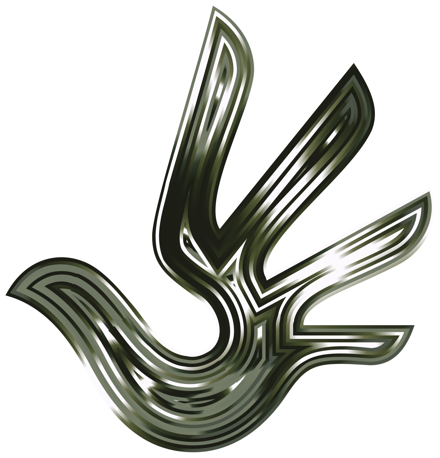 This features a large, abstract bird with its wings spread wide. The bird's wing is shaped like an arrow and has four distinct feathers. The overall appearance of the bird is black in color, giving it a sleek and modern look. The gloss effect on the bird adds to its visual appeal, making it stand out against any background. This unique design could be used for various purposes such as branding or artistic expression.