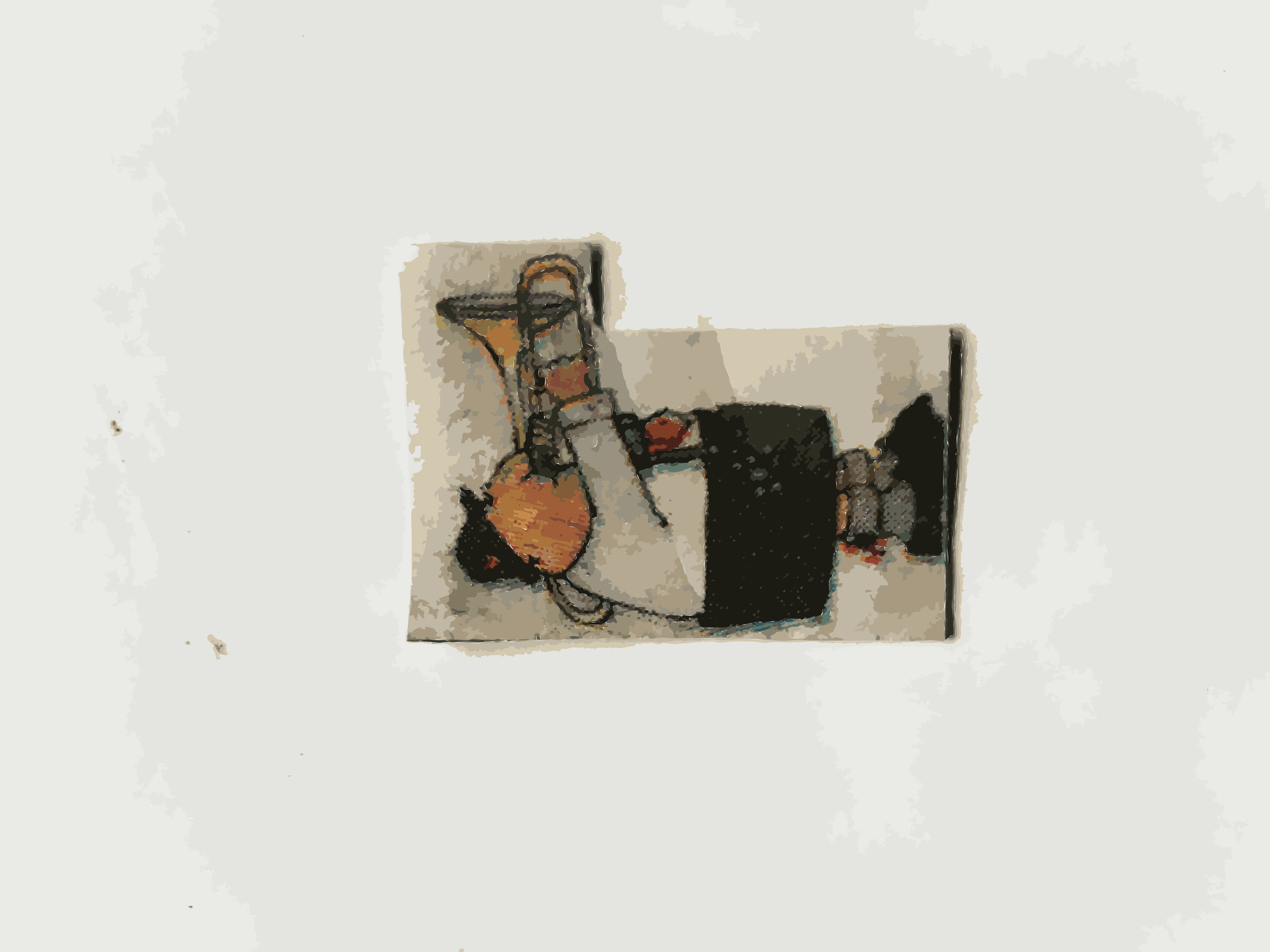 This features a small, square picture of a man lying on his back with a tuba in his hand. He appears to be resting or possibly sleeping while holding the instrument. The scene is depicted in black and white, giving it an artistic and timeless feel. The man's position and the presence of the tuba create a sense of relaxation and leisure, as if he has just finished playing music for an audience.