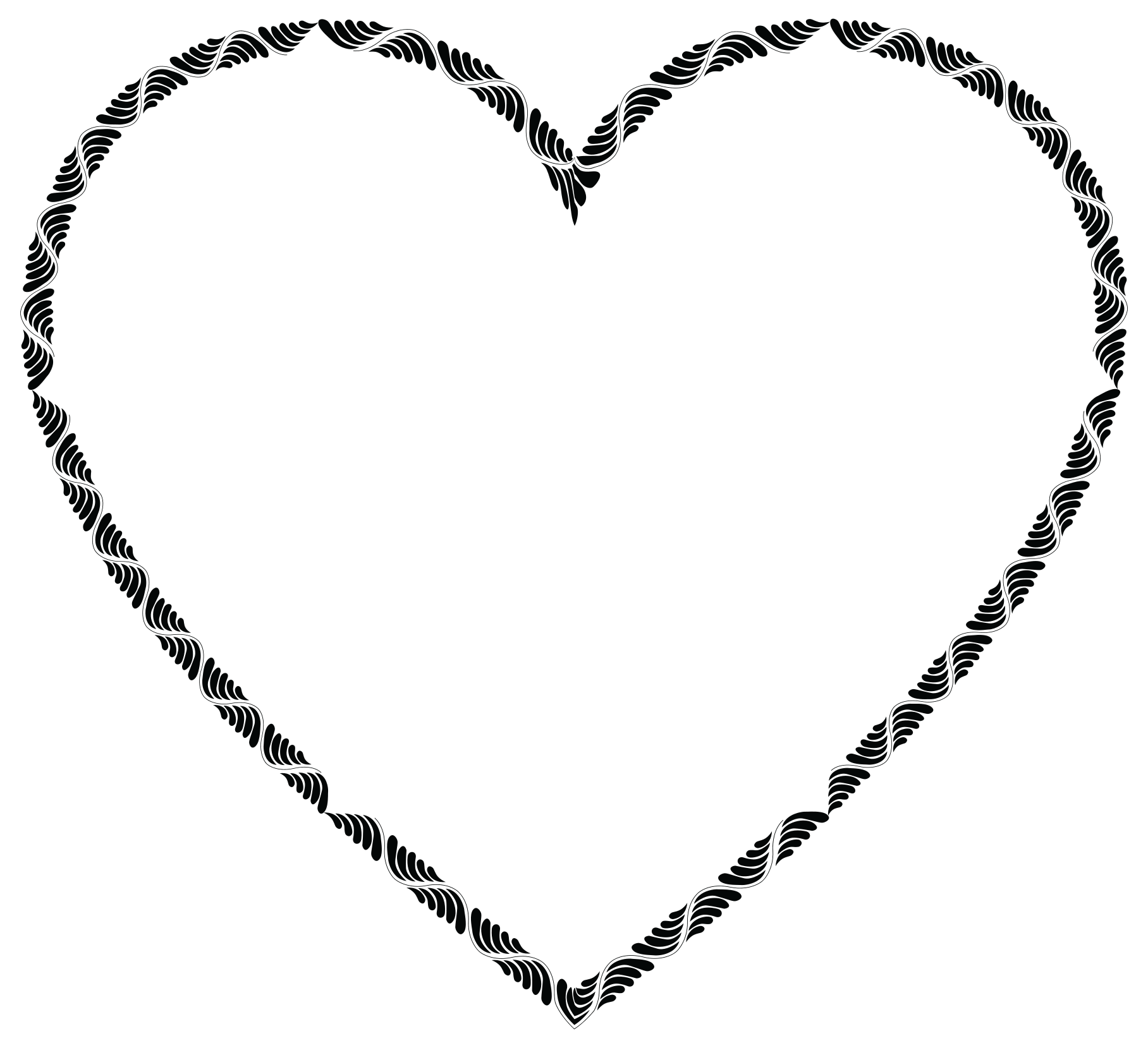 This features a heart-shaped design with a leaf pattern surrounding it. The heart is the central focus of the image, and its shape is clearly defined by the leaf pattern. The leaves are arranged in various positions around the heart, creating an intricate and visually appealing pattern. This unique design could be used for decorative purposes or as a creative element in artwork or crafts.