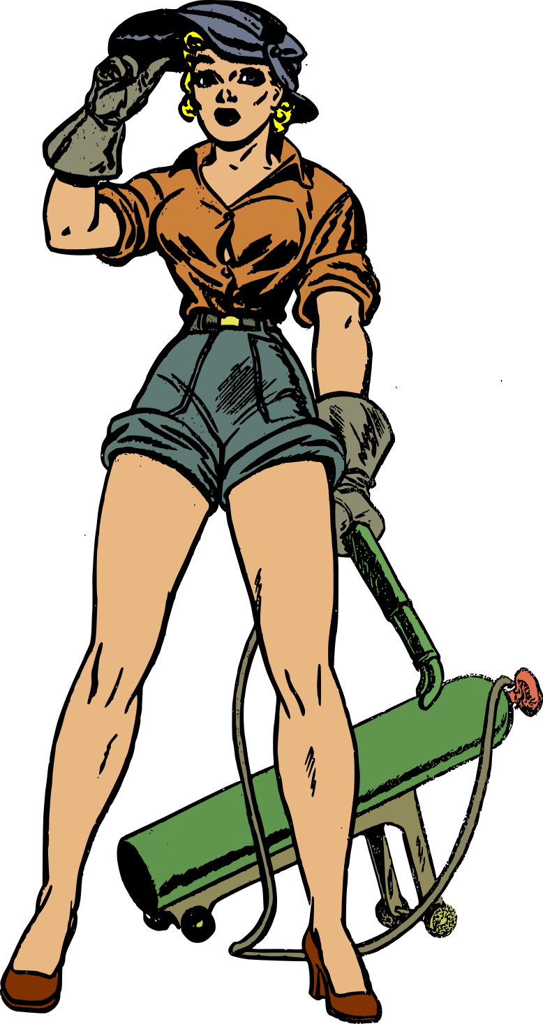 This features a woman dressed in shorts and a skirt, standing confidently with her hands on her hips. She is wearing a helmet for protection and has flowers in her hair, adding a touch of elegance to the scene. In her hand, she holds a green hose that is connected to a large metal green bottle, possibly used for cleaning or other purposes. The woman's attire and accessories suggest that she might be working on a project or task that requires both style and safety precautions.