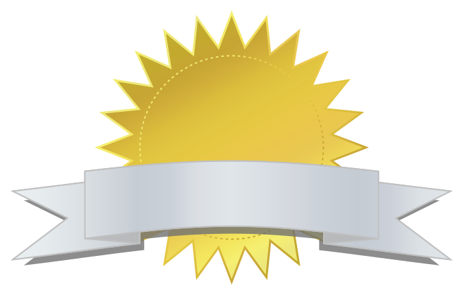 This features a gold emblem with a sun design on it. The emblem is shaped like a circle and has a pointy top, giving it an elegant appearance. In front of the emblem, there is a silver banner that adds to its prominence. The combination of the gold color and the sun design creates a visually appealing symbol.