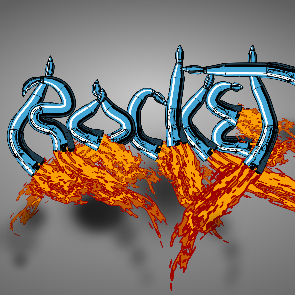 This is a creative and artistic representation of the word "rocket" using various objects. There are multiple rocket-shaped items scattered throughout the scene, with some placed closer to the foreground and others further in the background. These rocket-shaped items come in different sizes and orientations, creating an interesting visual effect. The overall composition of the image is visually engaging and demonstrates a unique approach to representing the word "rocket."