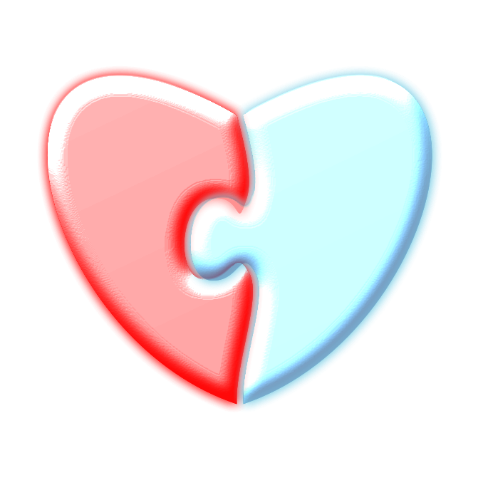 This features a heart made from two puzzle pieces. The piece on the left is red and the piece on the right is light blue. These two colors create an interesting contrast, making the heart visually appealing. The puzzle pieces are placed together to form a complete heart shape, showcasing their interconnectedness and unity. This design could be used for various purposes such as decoration or symbolism in different contexts.