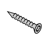 This features a small, black and white drawing of a screw. The screw is depicted as having a pointy end and is grey in color. It appears to be the only object in the image, with no other elements or distractions present.