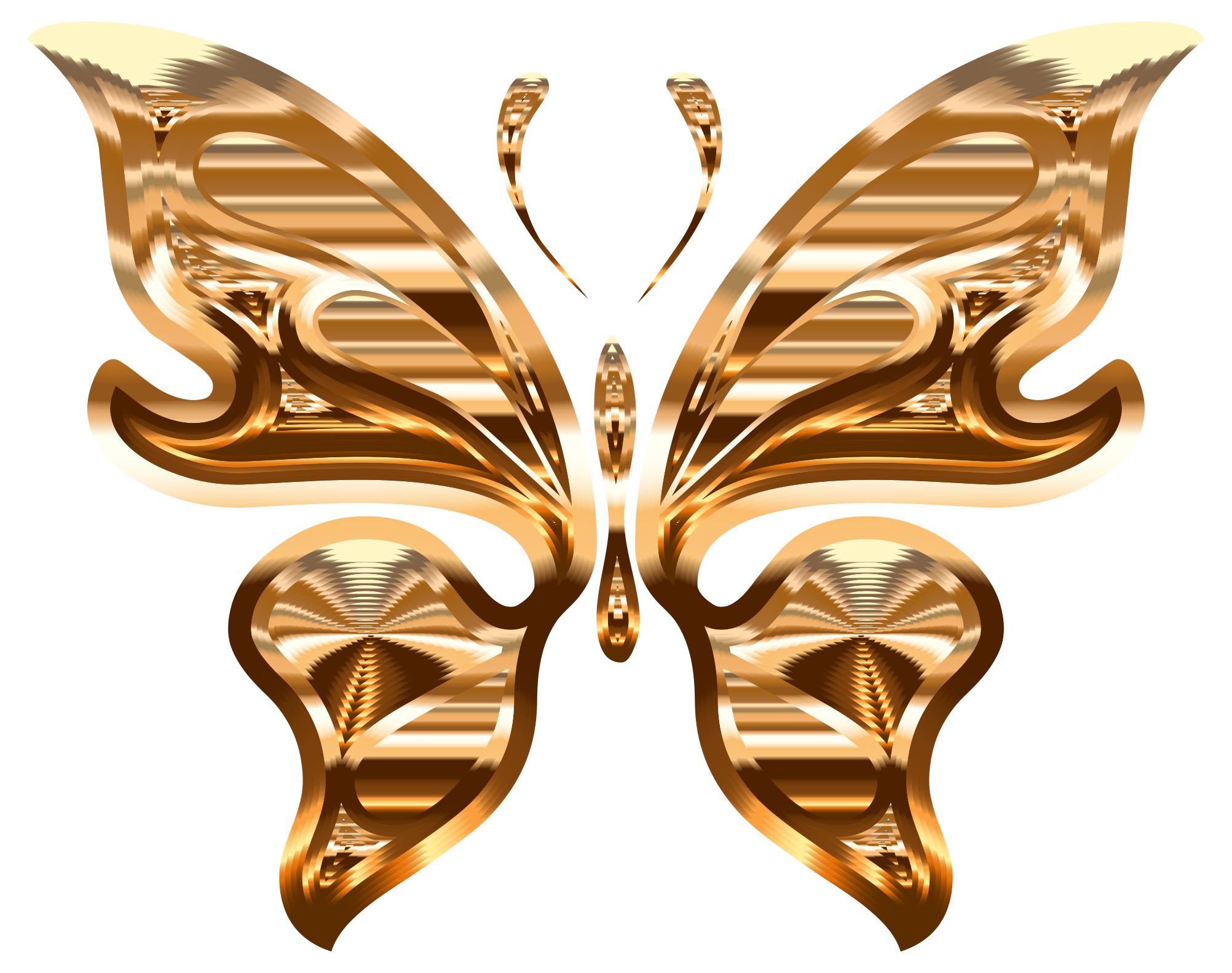 This features a beautifully crafted gold butterfly with intricate details. It is an artistic representation of the insect, showcasing its wings and body in a visually appealing manner. The butterfly's wings are spread out, giving it a sense of motion and grace. The colors used for this image are predominantly golden, creating a warm and inviting atmosphere. This artwork could be used as a decorative piece or to convey a message related to nature, beauty, or creativity.