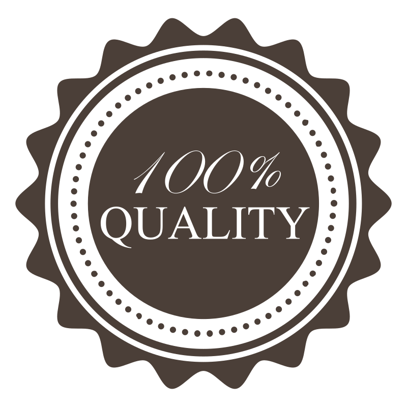 This features a round logo with the words "100% Quality" written on it. The logo is brown in color and has wavy outer lines, giving it an elegant appearance. This label suggests that the product or service being advertised meets high standards of quality, making it an attractive option for potential customers.