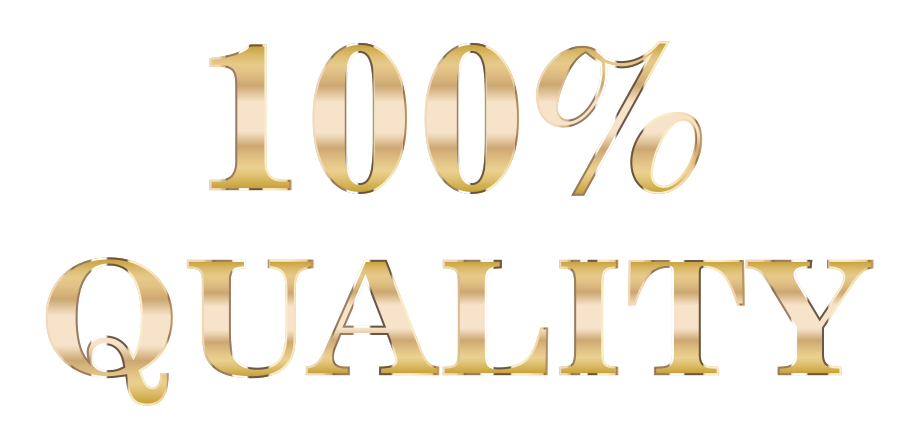 This features a large, bold sign that reads "100% Quality." The sign is displayed in gold and white colors, making it stand out against the background. The text is placed on top of a brown surface, which adds contrast to the overall design. This eye-catching sign could be used for advertising or promoting a product or service that emphasizes quality as its main selling point.
