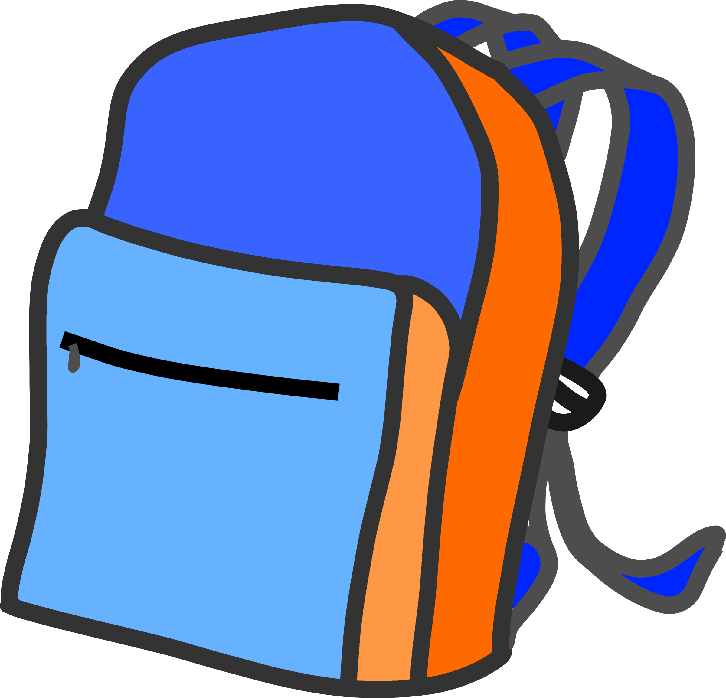 This features a colorful backpack with blue and orange stripes. It is an artistic drawing of the backpack, giving it a unique appearance. The backpack has two pockets, one larger than the other, providing ample storage space for its owner. The vibrant colors and creative design make this backpack stand out as a fun and eye-catching accessory.