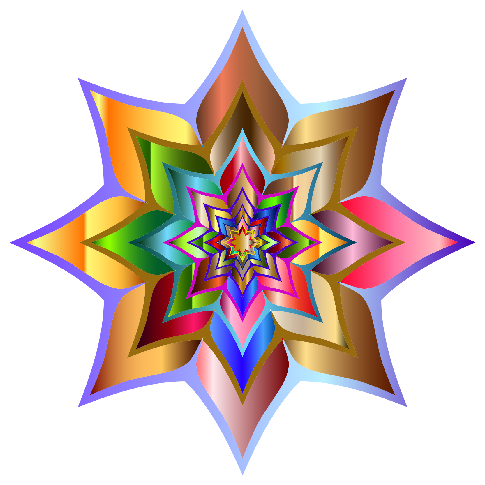 This features a large, colorful star with many smaller stars inside of it. This intricate design is made up of layers of different colors that create the illusion of depth and complexity. The star has eight edges, giving it an interesting shape and making it visually appealing. The various colors used in this artwork add to its vibrant and lively appearance, creating a striking visual effect.