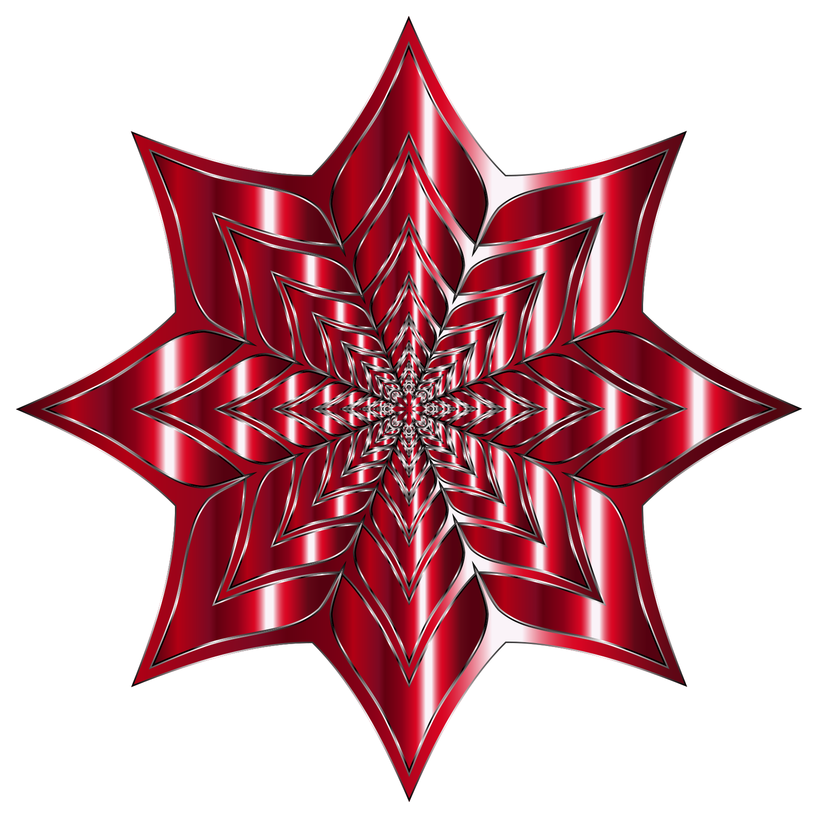 This features a large, intricate red design that resembles a flower or a star. It is composed of multiple layers and appears to be made up of many smaller shapes, creating an impressive visual effect. The color palette predominantly consists of shades of red, giving the entire composition a bold and striking appearance. This artistic piece could be used as a decorative element in various settings or even as a unique wallpaper design.