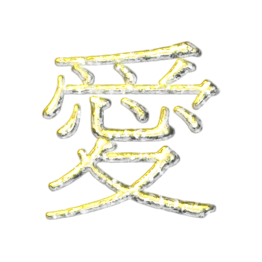 This features a close-up of an oriental symbol, possibly a Chinese character or Japanese letter. The symbol is written in yellow and appears to be made from metal or plastic. It has a shiny appearance, giving it a unique look. The symbol seems to be the main focus of the image, with no other objects or distractions visible.