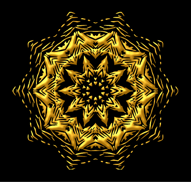 This features a large, intricate design that resembles an ornate golden star. This artistic piece is composed of various shapes and patterns, creating a visually striking centerpiece. The design appears to be inspired by the concept of a sunflower, with its vibrant colors and detailed elements. The overall composition of the image showcases the artist's skill in crafting an eye-catching and unique piece of artwork.