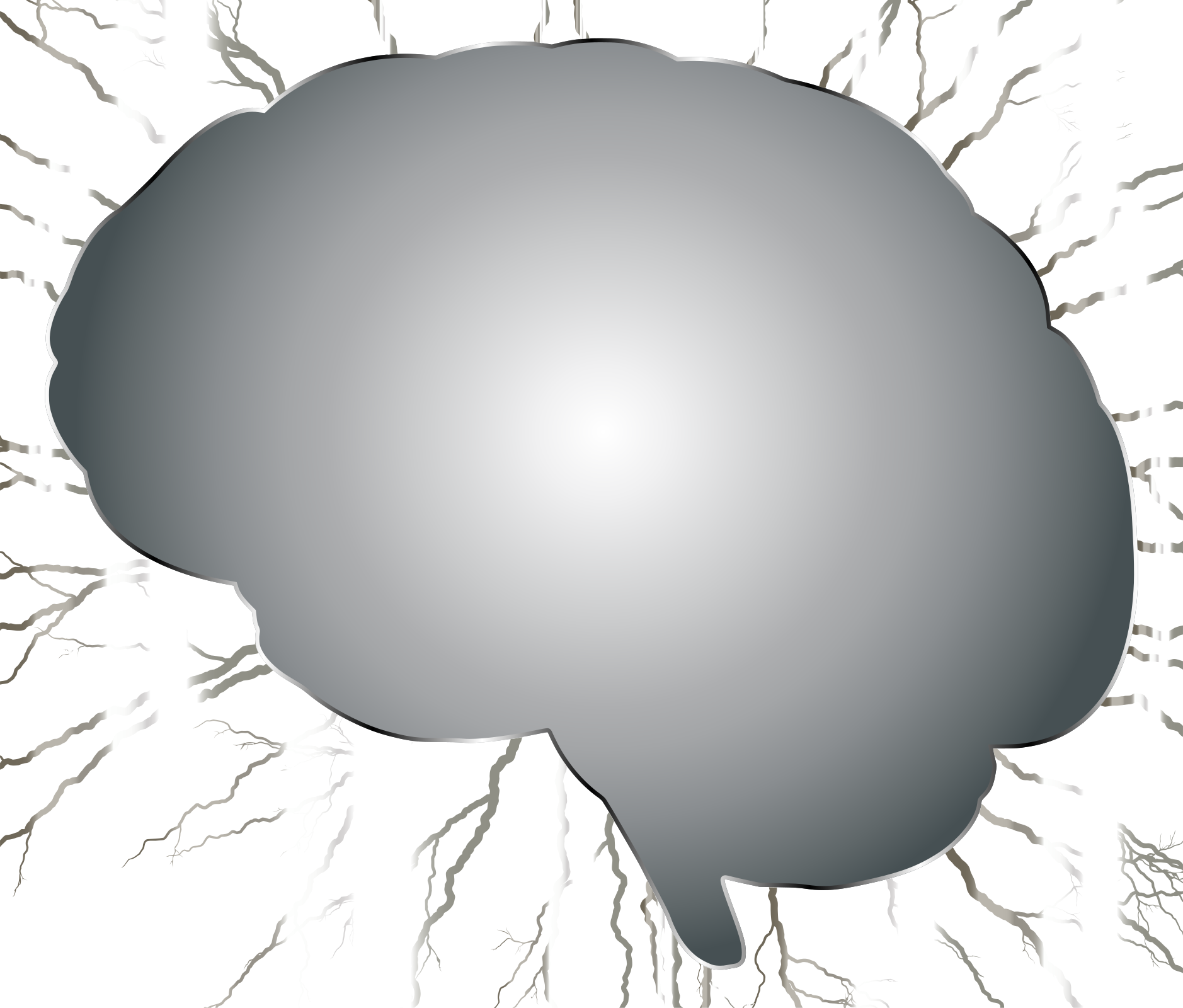This features a close-up of a gray brain with lightning around it, giving the impression of an intense brainstorm. The brain is prominently displayed in the center of the scene, surrounded by a few lightning bolts that add to the dynamic nature of the image. This creative and thought-provoking visual can be used for various purposes such as artistic expression or conveying ideas related to mental processes and cognitive functions.