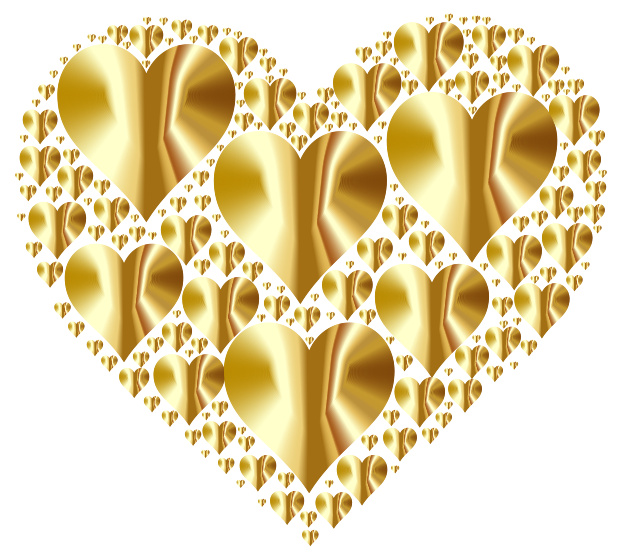 This features a large heart made up of smaller hearts, all in shades of gold. These smaller hearts are scattered throughout the scene and vary in shape and size, creating an intricate pattern that resembles a mosaic. The overall effect is visually appealing and captures the essence of love with its warm, golden hues.