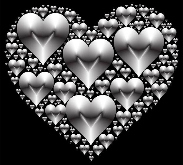 This features a large heart made up of many smaller hearts. These smaller hearts are arranged in various positions, creating an intricate and visually appealing pattern. The hearts come in different sizes and shapes, adding depth and complexity to the overall design. The arrangement of these hearts creates a sense of unity and harmony within the image, making it an attractive and eye-catching piece of artwork.