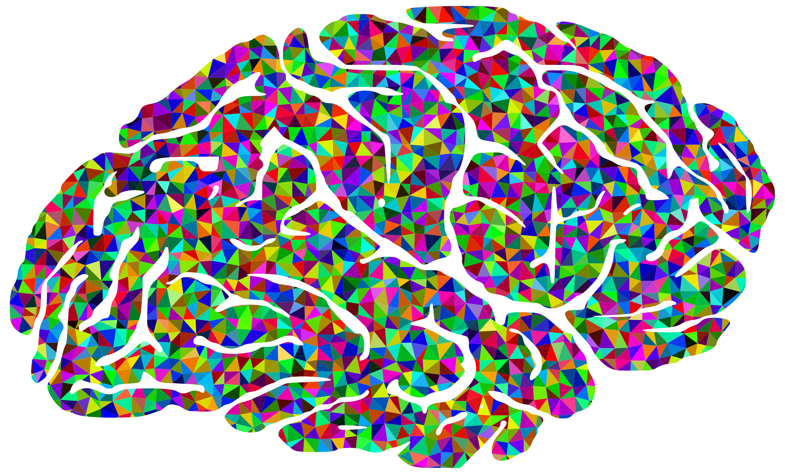 This features a close-up of a colorful brain, showcasing its intricate structure. The brain is made up of various shapes and colors, creating an interesting visual effect. It appears to be a prismatic colored brain, with each shape and color contributing to the overall vibrant appearance. This unique representation of the human brain provides a fascinating perspective on the complexities within our skulls.