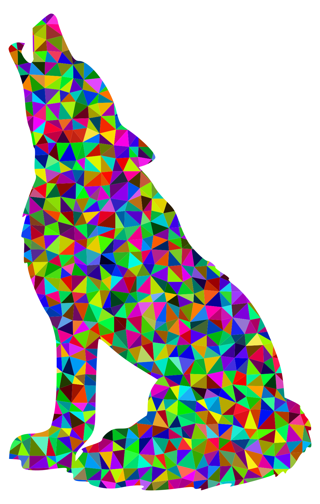 Tags: abstract, animal, art, chromatic, colorful, geometric, hunter, low poly, polygon, predator, prismatic, rainbow, triangle, triangular, wolf, wolf colorful