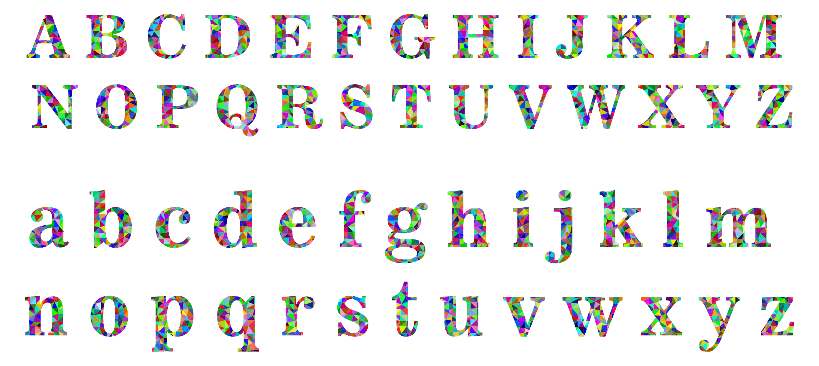 Tags: abstract, alphabet, art, capitals, chromatic, colorful, effect font, english, geometric, letter, lowercase, low poly, polygon, prismatic, rainbow, text, triangle, triangular, type, typography, uppercase, word