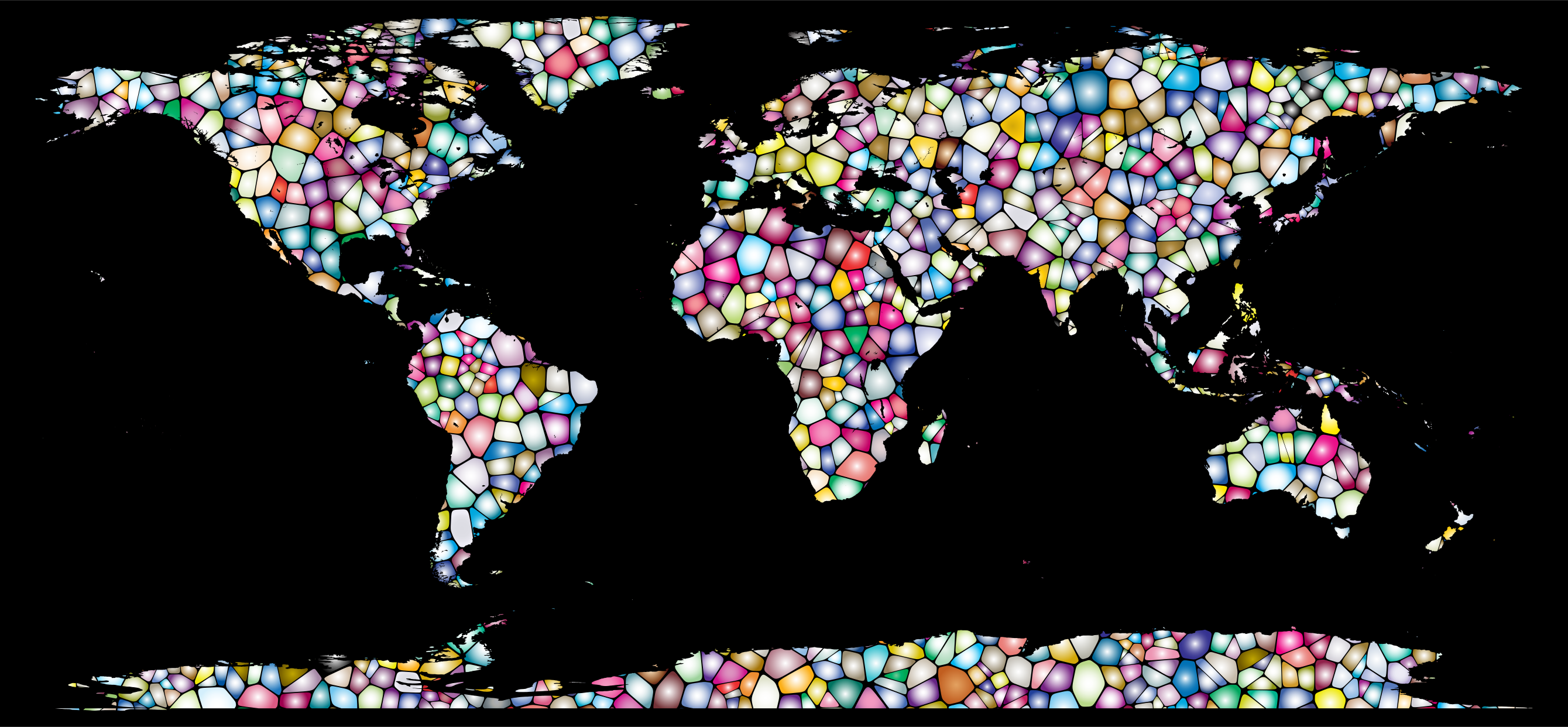 Tags: abstract, art, cartography, chromatic, colorful, continent, earth, geography, geometric, globe, map, planet, prismatic, rainbow, tiled, tile, voronoi, world, world map, puzzle piece